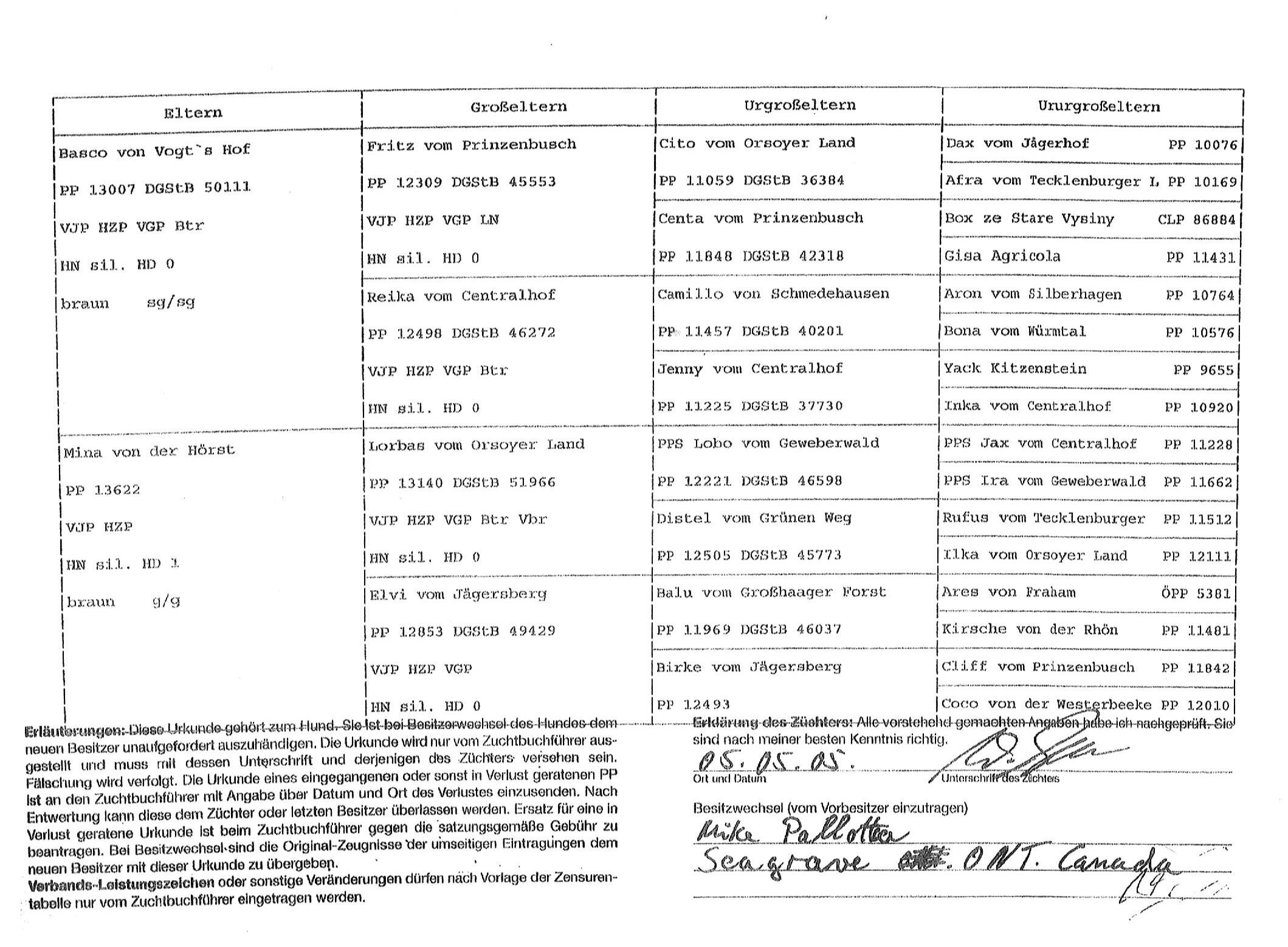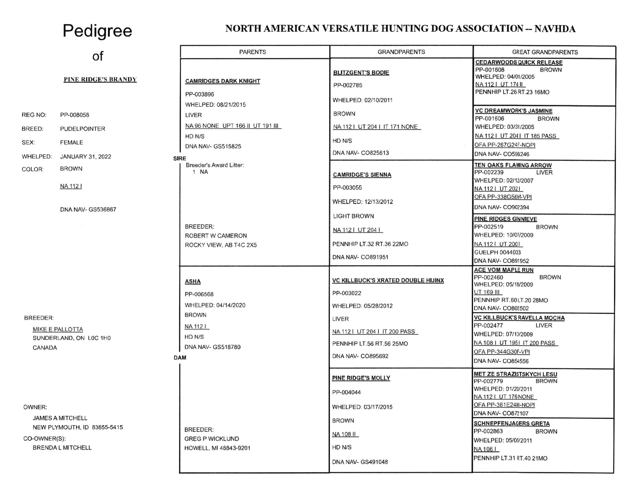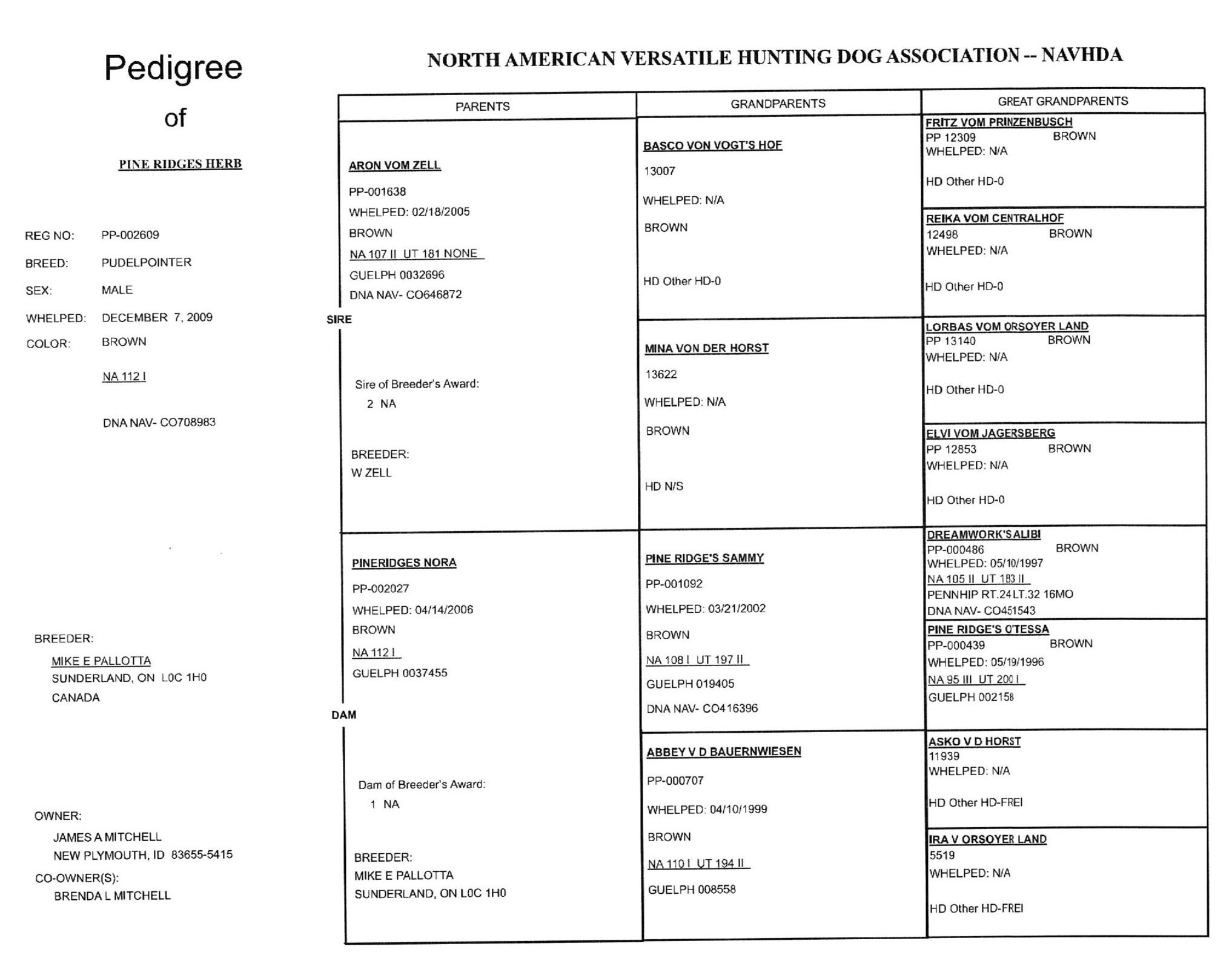 Our dogs are registered in NAVHDA (North American Versatile Hunting Dog Association). Registration papers will be provided to the buyers upon transfer of the puppy. All of our puppies will have limited registrations, no breeding rights. Full registration with breeding rights may be obtained in the future if the dog passes a NAVHDA Utility hunt test and has a satisfactory hip rating.5) Guarantee
